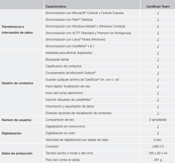 integra un escáner de tarjetas de visita de sobremesa a color y un software de gestión de contactos con multitud de funciones que resultan ideales para el usuario avanzado.